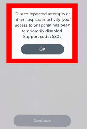 El código de soporte SS07 es un error que ocurre cuando Snapchat detecta actividad sospechosa en su cuenta o ha intentado demasiados intentos de inicio de sesión o ha ingresado una contraseña incorrecta varias veces.