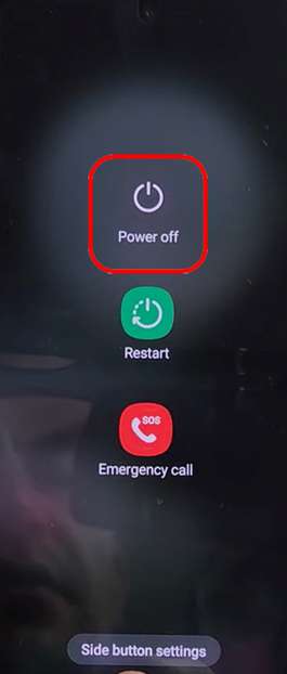 Paso 1: Mantenga presionado el botón de Encendido hasta que aparezca el Menú de apagado. Toque la opción Apagar.