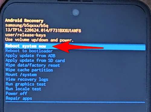 Paso 6: Una vez que se complete el proceso, volverá al menú principal de recuperación. Aquí, resalte y seleccione “Reiniciar el sistema ahora” para iniciar su dispositivo en modo normal.