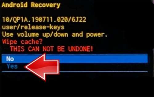 Paso 4: Ahora, con el uso del botón para bajar el volumen, seleccione “borrar partición de caché” y presione el botón de Encendido para confirmar.
