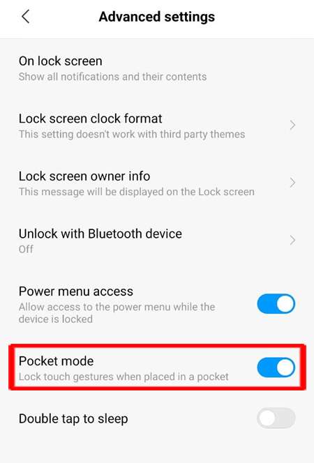 - Ahora, mueva el interruptor a la posición APAGADO junto a “Modo de bolsillo”.